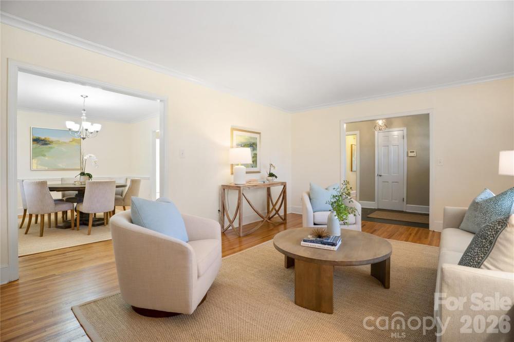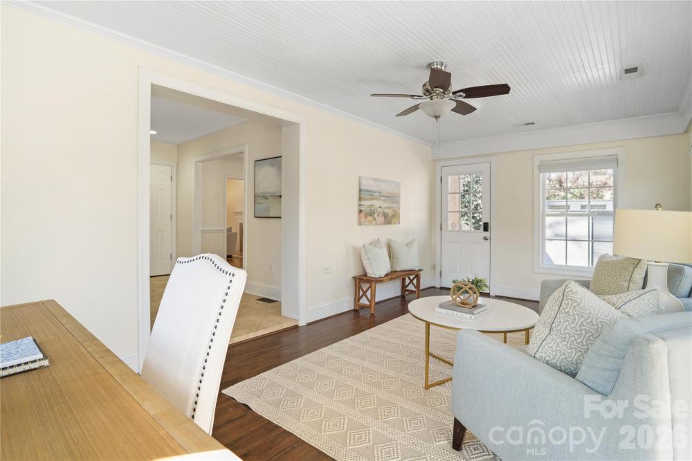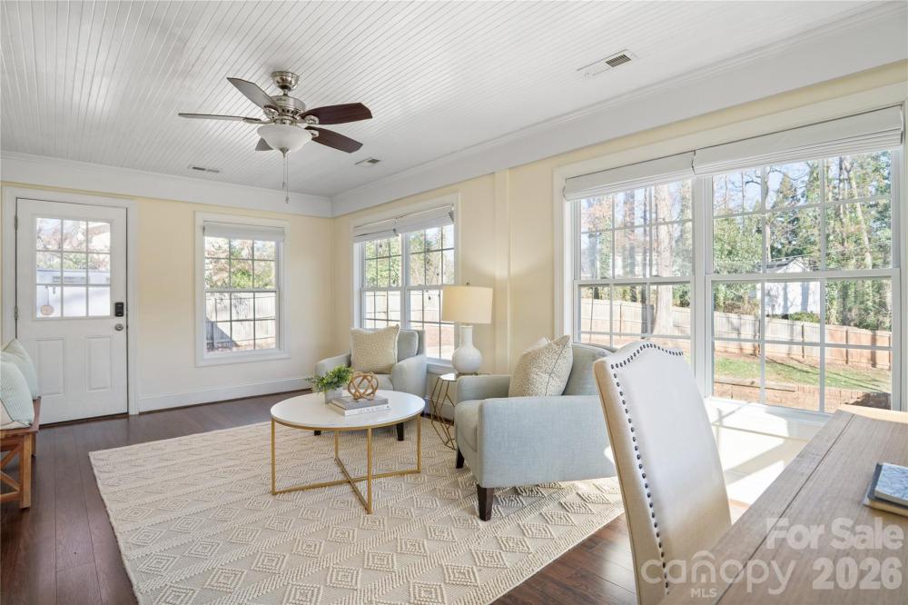This move-in ready classic ranch in the highly desirable Robinson Woods neighborhood is designed for the way people really live. With versatile spaces on the main level and a fabulous finished basement, there's room to spread out when you need space and cozy up when it's time to connect. The spacious gourmet kitchen is a chef's dream, featuring a breakfast bar, granite counters, gas cooktop, stainless steel appliances, and a generous pantry. It opens to a cozy all-season sunroom—perfect for morning coffee or watching life unfold in the fenced backyard. Downstairs is where this home truly shines. The finished basement features a bedroom, large fireplace, and wet bar—making it ideal for movie nights, out of town visitors, or multi-generational living. This house offers privacy and togetherness, all under one roof. Two patios overlook a large backyard, offering the perfect setting for weekend barbecues, fire pit gatherings, or lawn games. New HVAC in 2022. Residents benefit from a private gate that provides direct access to Providence Day School. You'll love this convenient Charlotte location with easy access to Uptown, SouthPark, and all the dining and entertainment Charlotte has to offer.