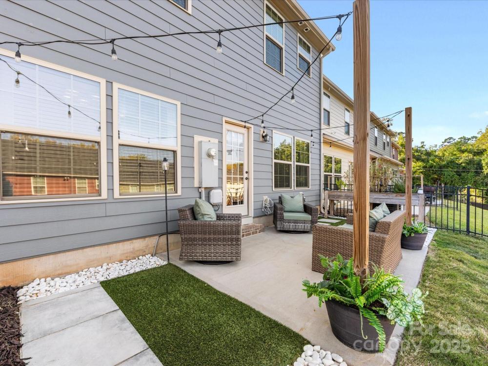 If you want a beautiful townhome with city convenience and skyline views, this is it. Feel the ease of low-maintenance, convenient city living just minutes from Uptown. Freshly painted rooms and refinished hardwoods set a warm, welcoming tone. The kitchen is made for gathering with a center island and stainless appliances and an open floor plan that leads to a fenced in yard with a patio. Retreat upstairs to a generous owner’s suite with trey ceiling, walk-in closet, and a spa-like bath featuring a tiled shower, dual sinks, and a soaking garden tub. Two additional bedrooms and a true laundry room (not a closet!) keep life organized. Stay home and fire up the grill on the back patio with a built in gas line - no more propane tanks! For nights out, walk to your favorites—Bossy Beulah’s, Towne Brewing, Rhino Market, Pizza Baby, Not Just Coffee, Lucky Dog Bark & Brew, Pinky’s Westside Grill, and Legion Brewing. Game day? Walk to the Panthers stadium and avoid the hassle of Ubers or parking. With a 2-car garage and extra-long driveway, parking is easy with plenty of room for guests. This property also qualifies for a grant that pays up to $7500 in a credit for closing costs/escrow; 1% discount point credit to buy down rate; no income limit for borrow. Check out the improvement project at nearby Bryant Park, which also includes a Stewart Creek Greenway extension.